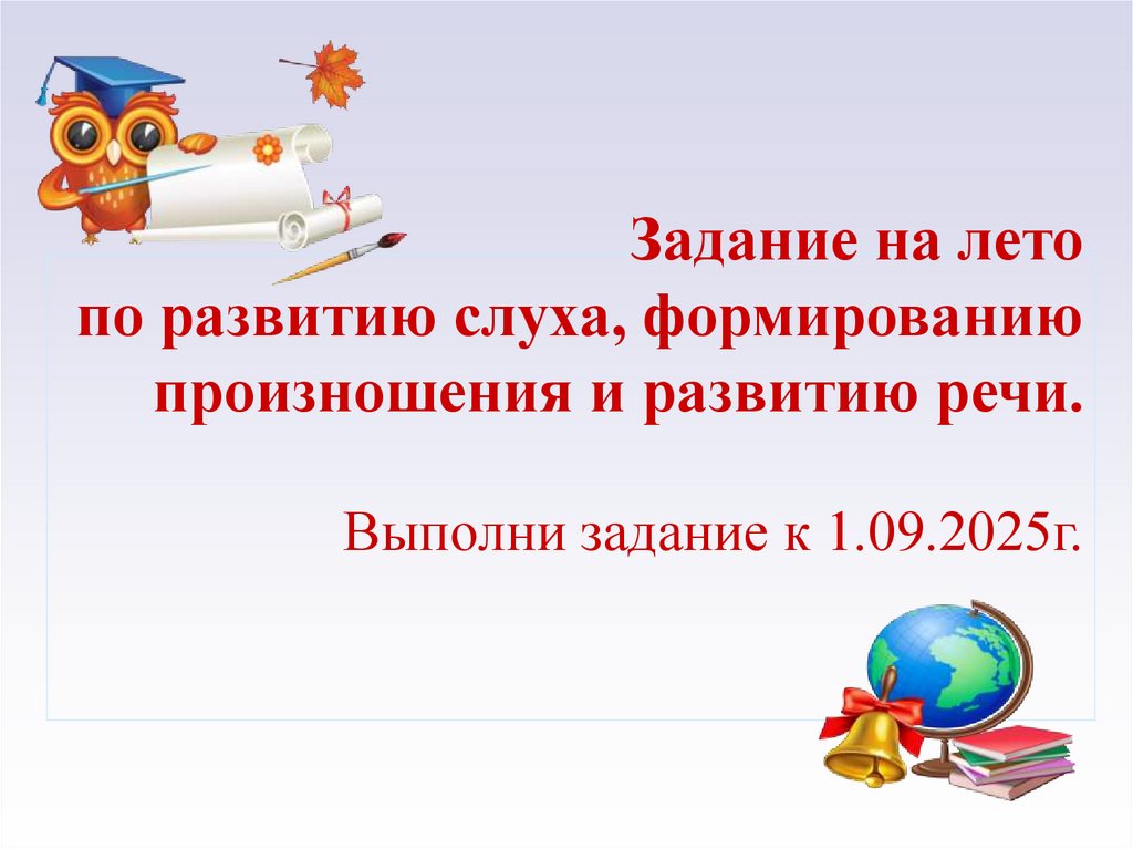 1. Задание на лето по развитию слуха, формированию произношения и развитию речи. Выполни задание к 1.09.2025г.