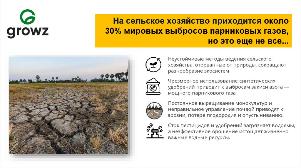 На сельское хозяйство приходится около30% мировых выбросов парниковых газов,