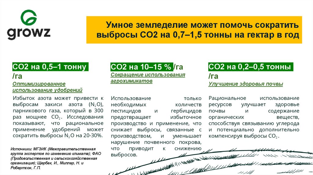 10. Умное земледелие может помочь сократить выбросы CO2 на 0,7–1,5 тонны на гектар в год