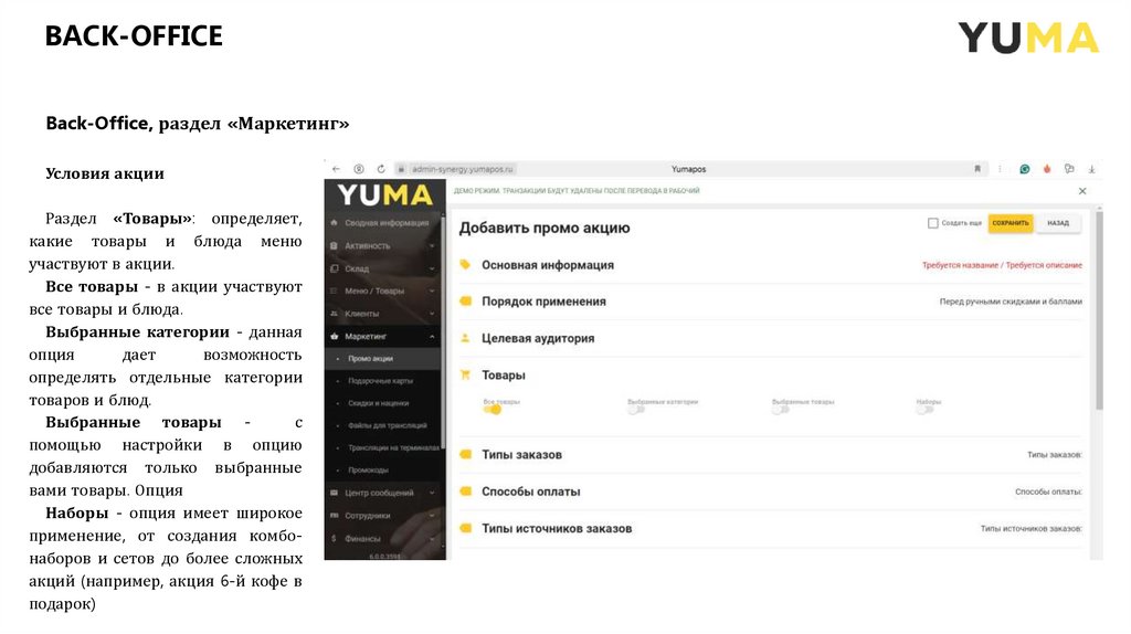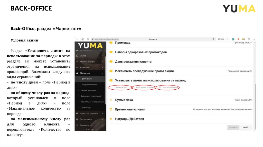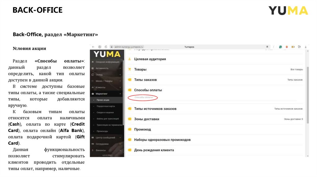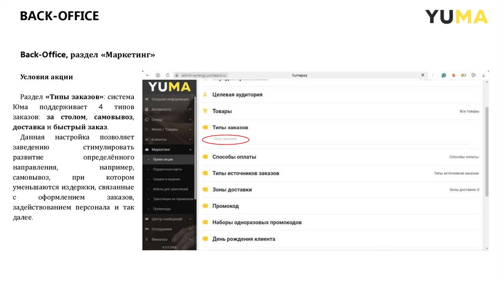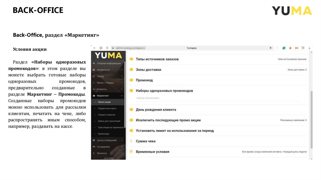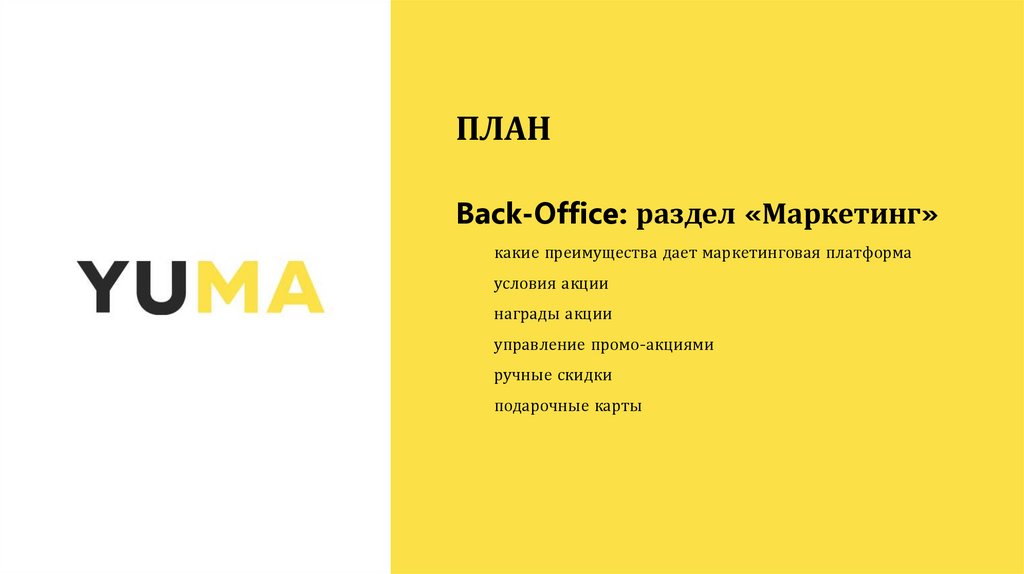 План Back - Office: раздел «Маркетинг»