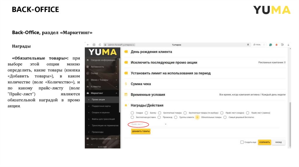 BACK-OFFICEBack-Office, раздел «Маркетинг»