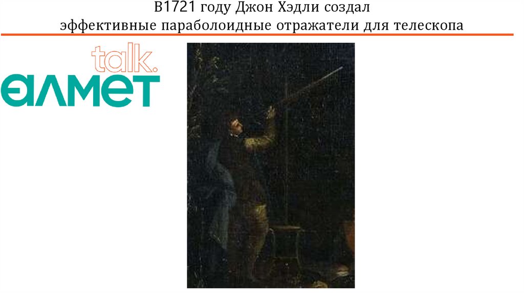 В1721 году Джон Хэдли создалэффективные параболоидные отражатели для телескопа