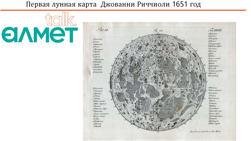 Первая лунная карта Джованни Риччиоли 1651 годописание