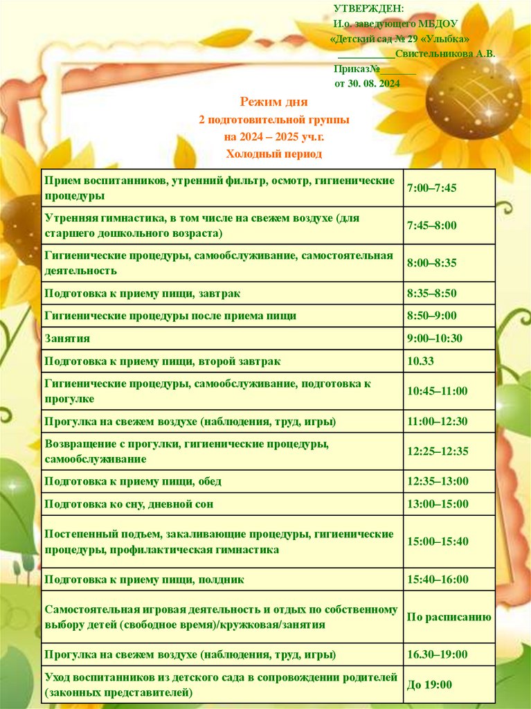 3. УТВЕРЖДЕН: И.о. заведующего МБДОУ «Детский сад № 29 «Улыбка» ___________Свистельникова А.В. Приказ№_______ от 30. 08. 2024
