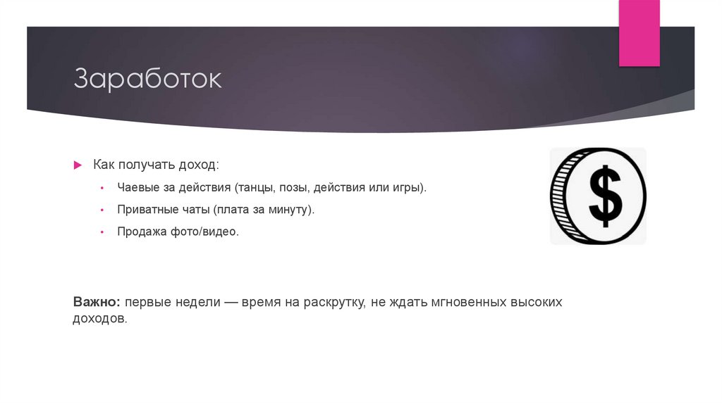 Как получать доход:Чаевые за действия (танцы, позы, действия или игры).
