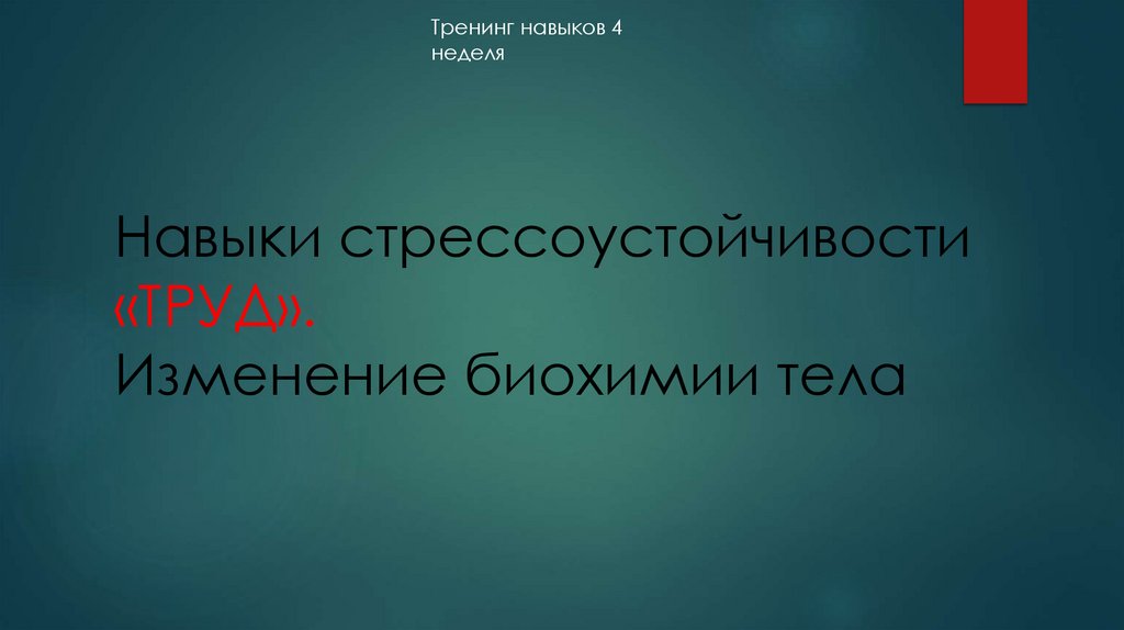 1. Навыки стрессоустойчивости «ТРУД». Изменение биохимии тела