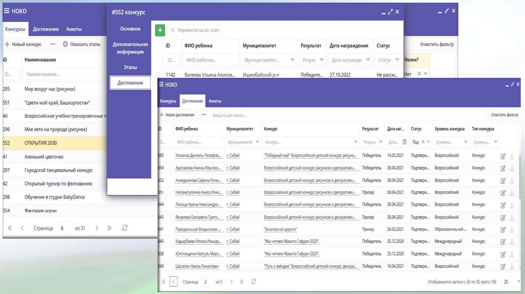 o Рейтинг -- (образовательные организации/объединения УДО/программы) сравниваются между собой и