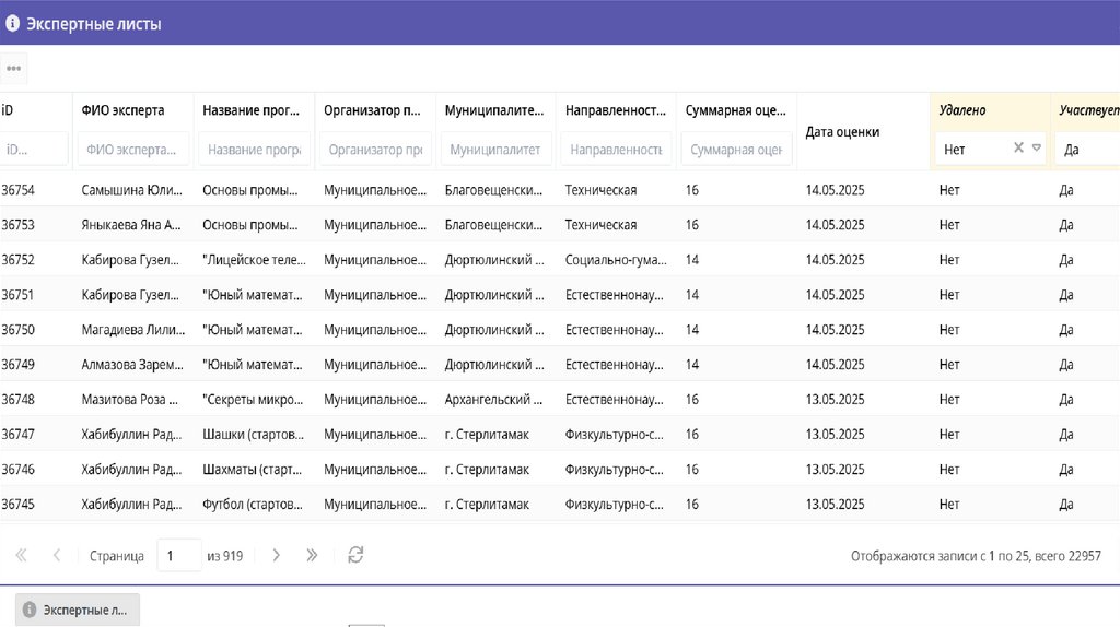 o Таблица лиг (образовательные организации/объединения УДО) разбиваются на группы или лиги в