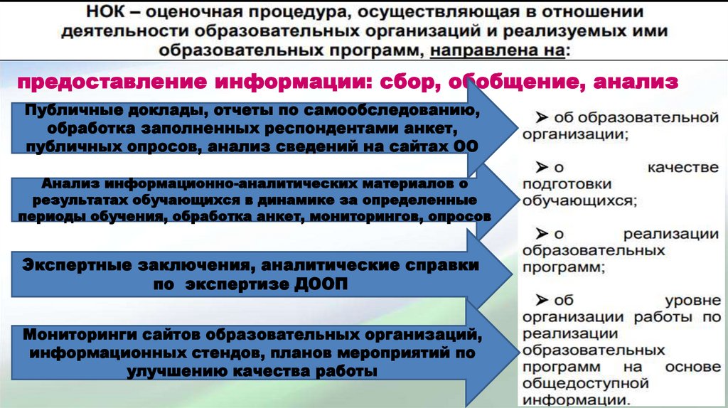 предоставление информации: сбор, обобщение, анализПубличные доклады, отчеты по самообследованию,