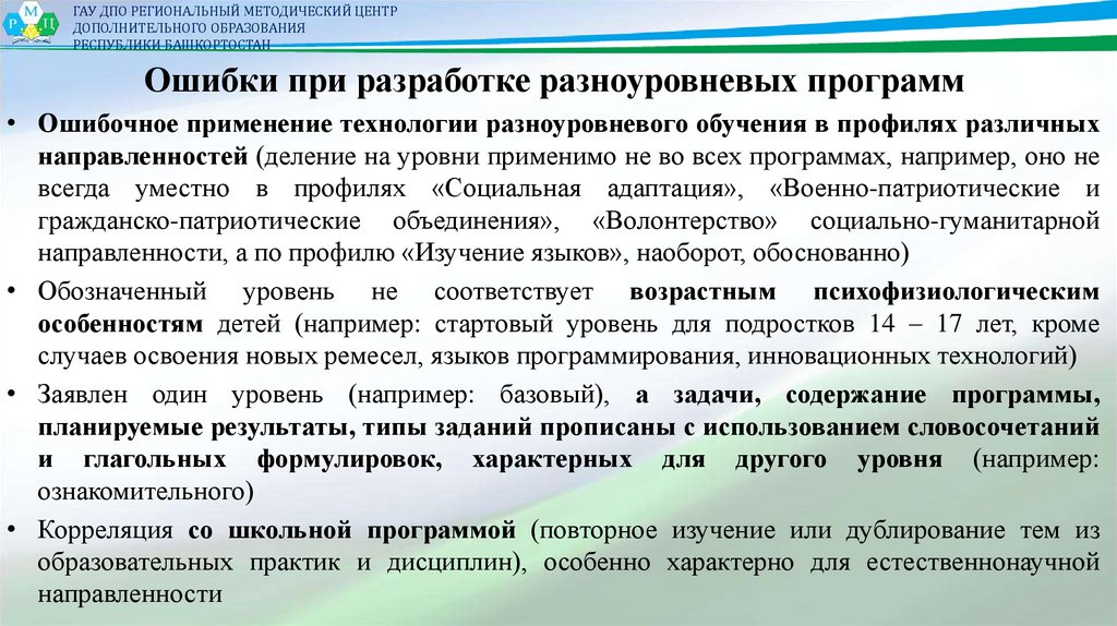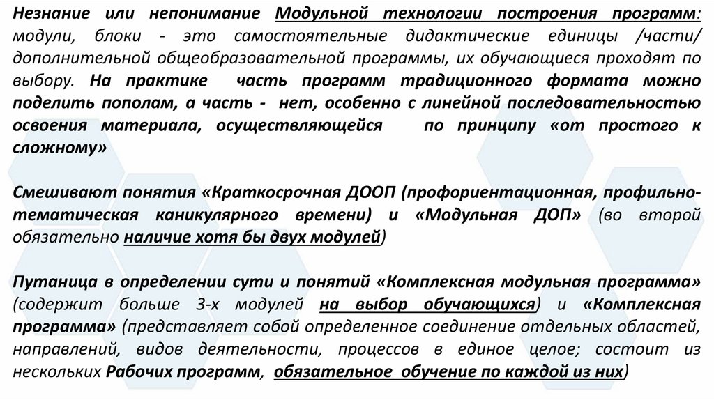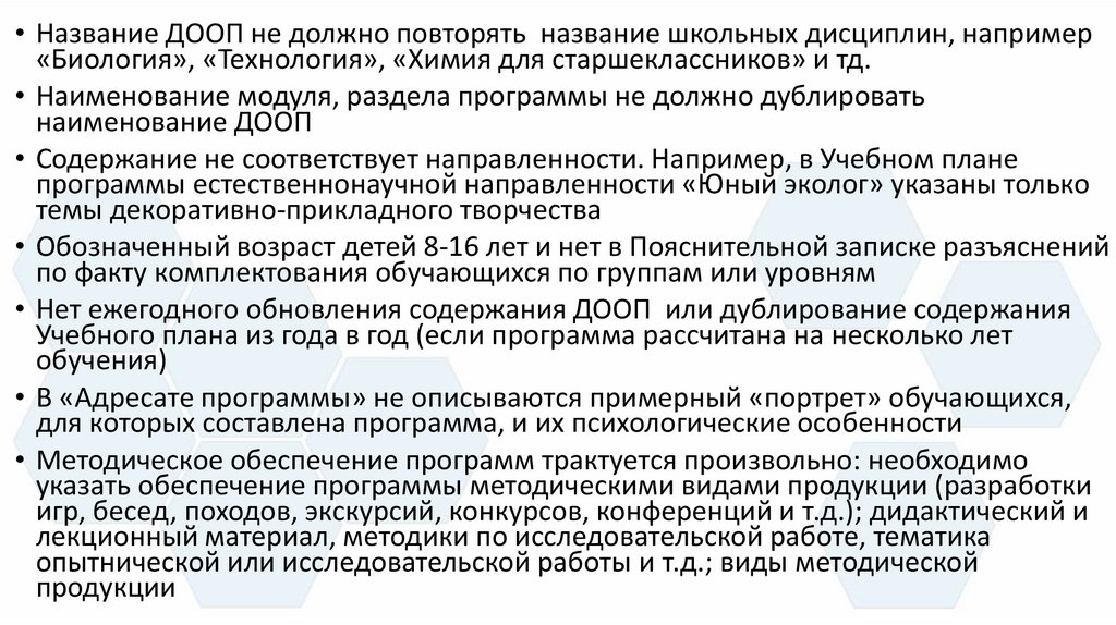 o Путаница с программами, разработанными на стыке 2-х направленностей ДО и трудности в