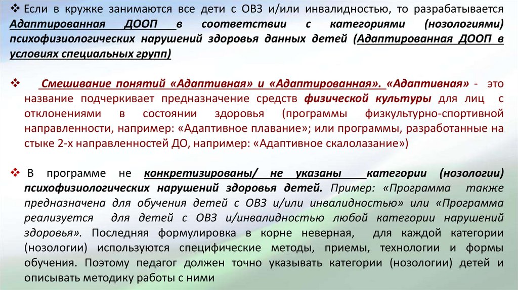 обучения. Поэтому педагог должен точно указывать категории (нозологии) детей и