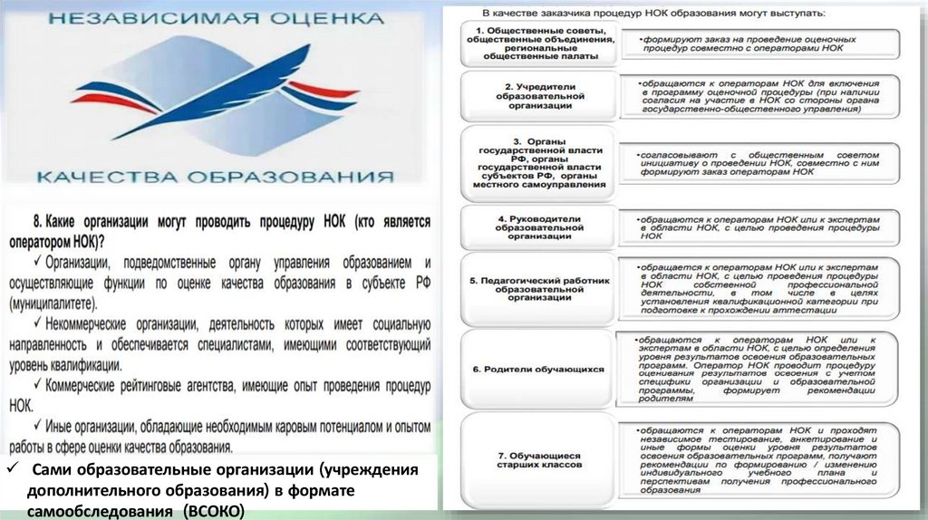 - НОК дополнительных общеобразовательных общеразвивающих программ (ДООП) в УДО проводится ежегодно