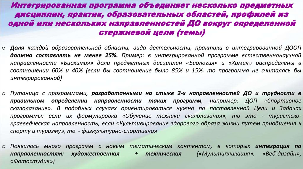 должна составлять не менее 25%. Пример: в интегрированной программе естественнонаучной