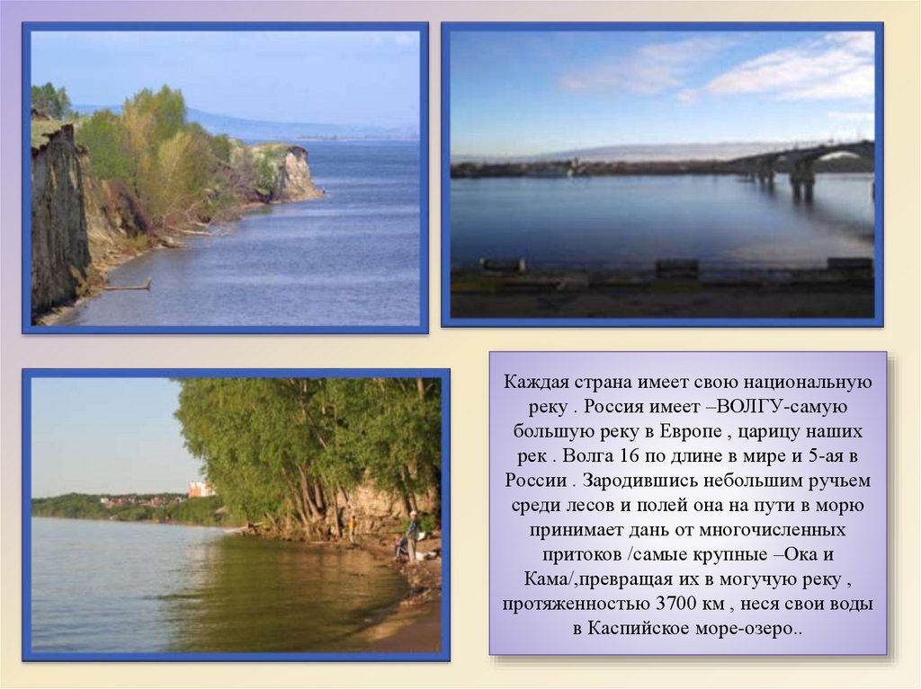 Каждая страна имеет свою национальнуюреку . Россия имеет –ВОЛГУ-самую