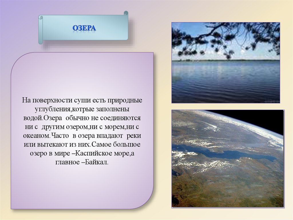 На поверхности суши есть природныеуглубления,котрые заполнены