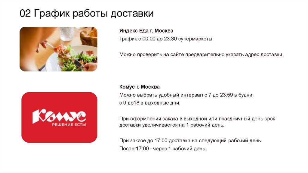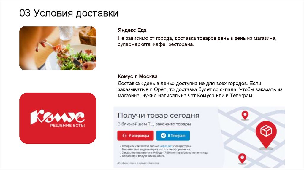 (микромаркеты, питание в ресторанах/кафе, доставка или