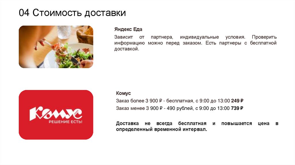 Заказ менее 3 900 ₽ - 490 рублей, с 9:00 до 13:00 739 ₽