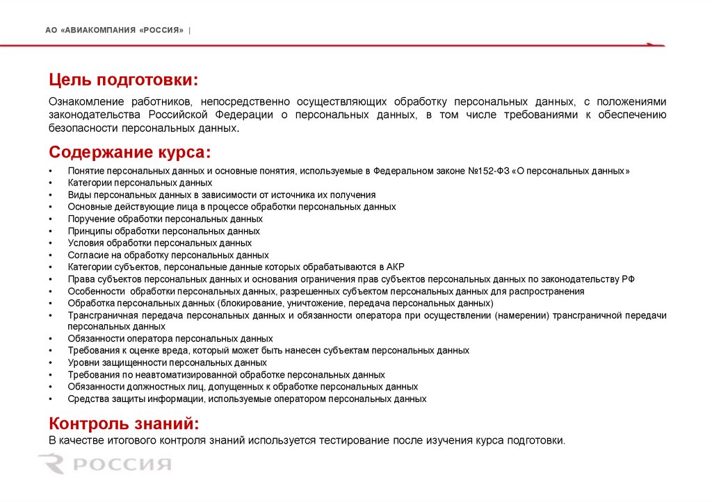 АО «АВИАКОМПАНИЯ «РОССИЯ» |Цель подготовки: