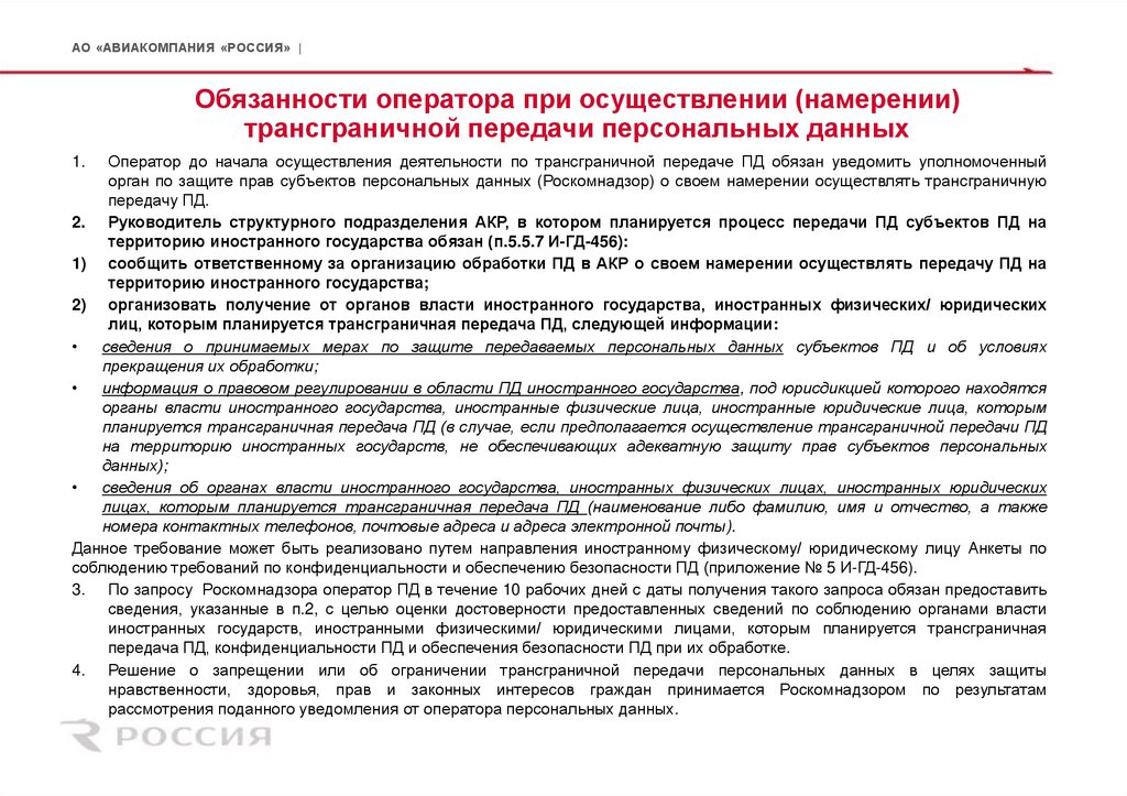 АО «АВИАКОМПАНИЯ «РОССИЯ» |Меры обеспечения безопасности своих персональных