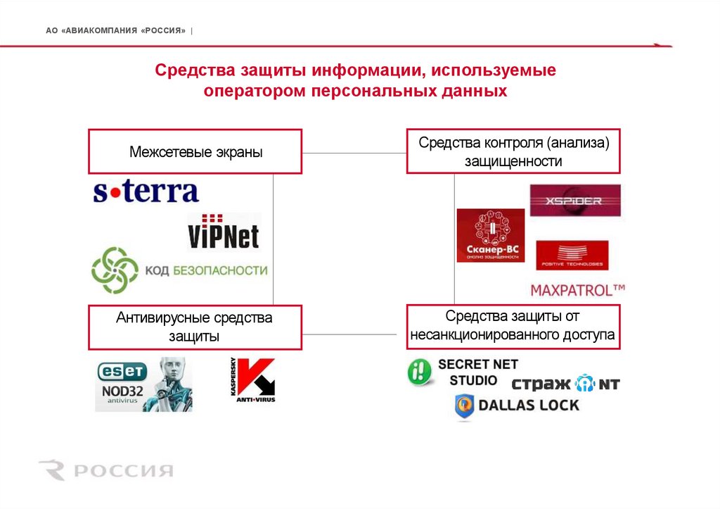 АО «АВИАКОМПАНИЯ «РОССИЯ» |Средства защиты информации, используемые