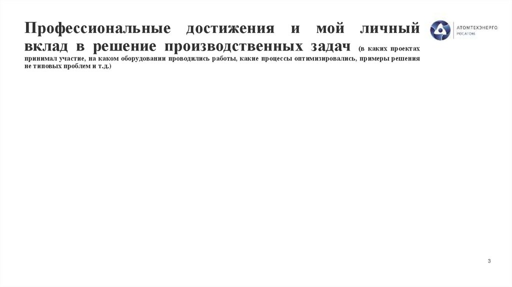 Профессиональные достижения и мой личныйвклад в решение производственных задач (в каких проектах