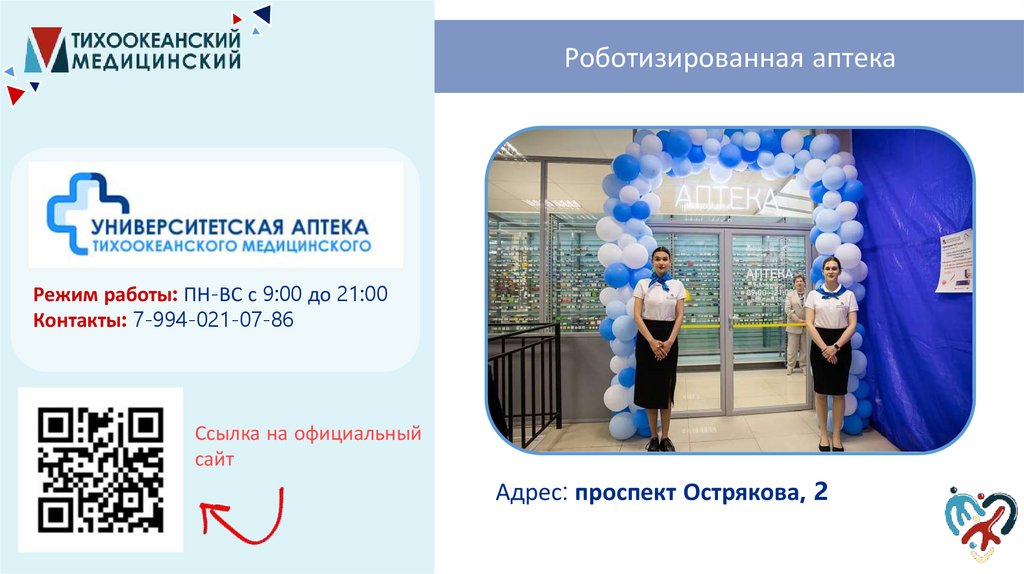 Роботизированная аптекаРежим работы: ПН-ВС с 9:00 до 21:00