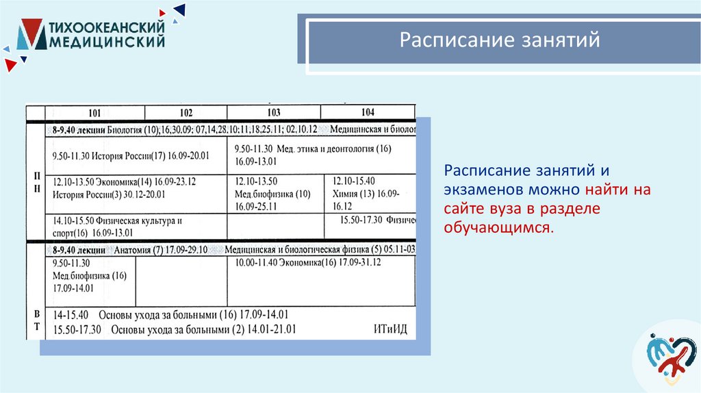Расписание занятийРасписание занятий и