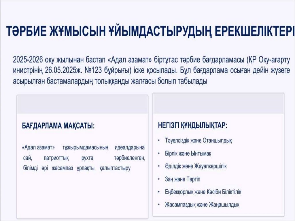 «Адал азамат» біртұтас тәрбие бағдарламасы