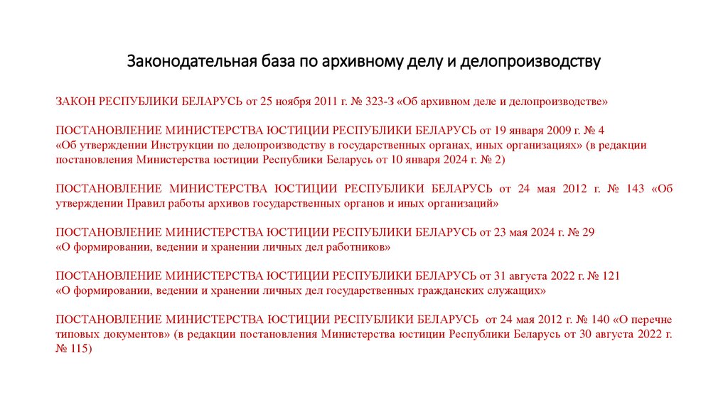ЗАКОН РЕСПУБЛИКИ БЕЛАРУСЬ от 25 ноября 2011 г. № 323-З «Об архивном деле и делопроизводстве»