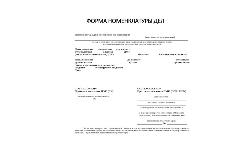 ФОРМА НОМЕНКЛАТУРЫ ДЕЛ