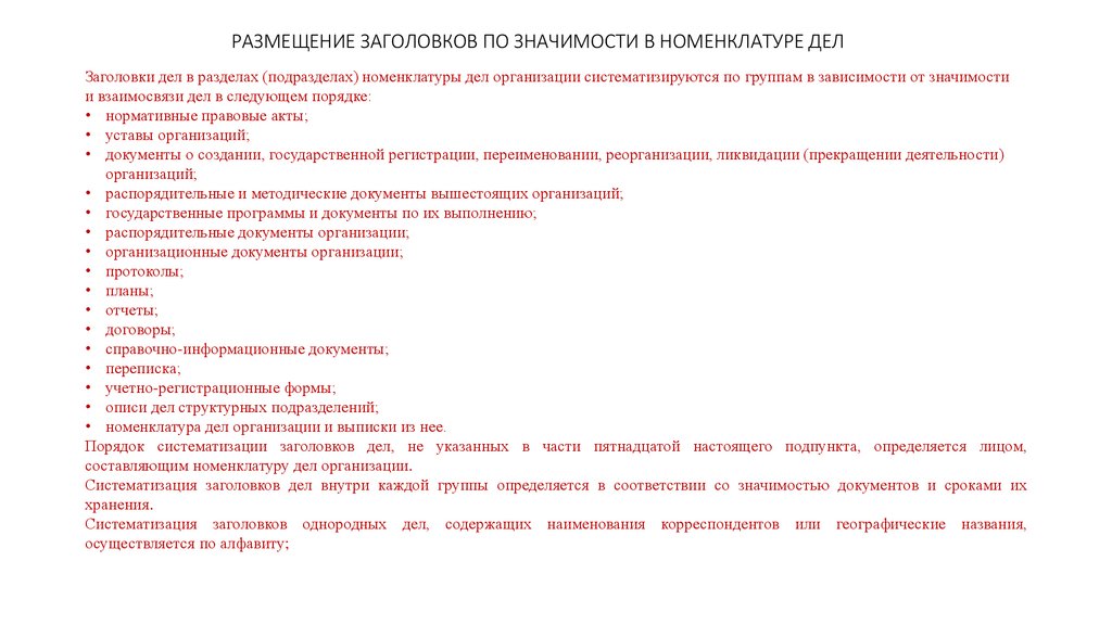 НОМЕНКЛАТУРА ДЕЛ ОРГАНИЗАЦИИ