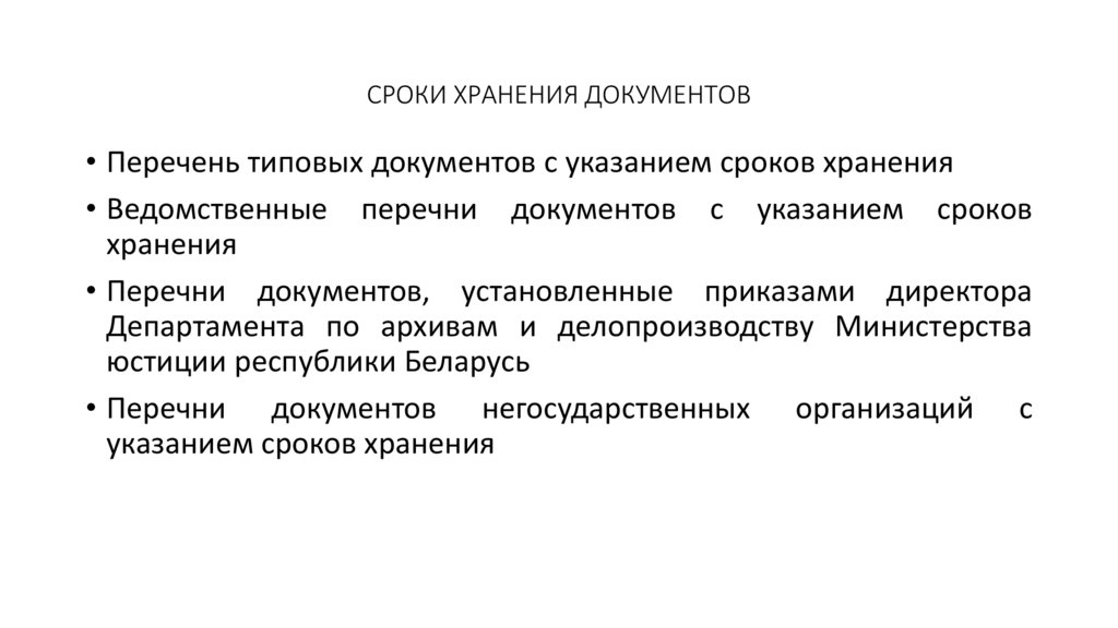 СРОКИ ХРАНЕНИЯ ДОКУМЕНТОВ