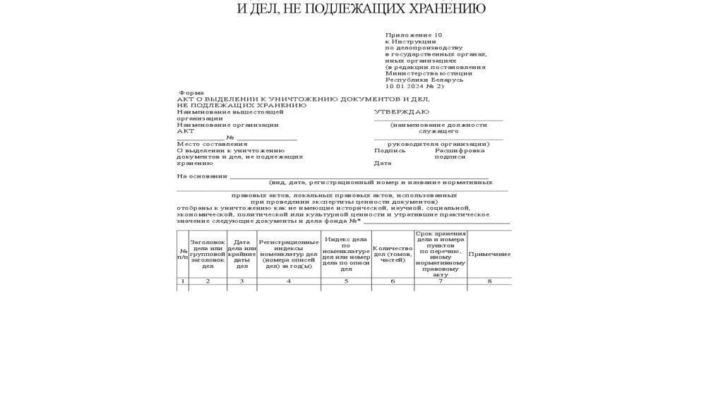 И ДЕЛ, НЕ ПОДЛЕЖАЩИХ ХРАНЕНИЮ