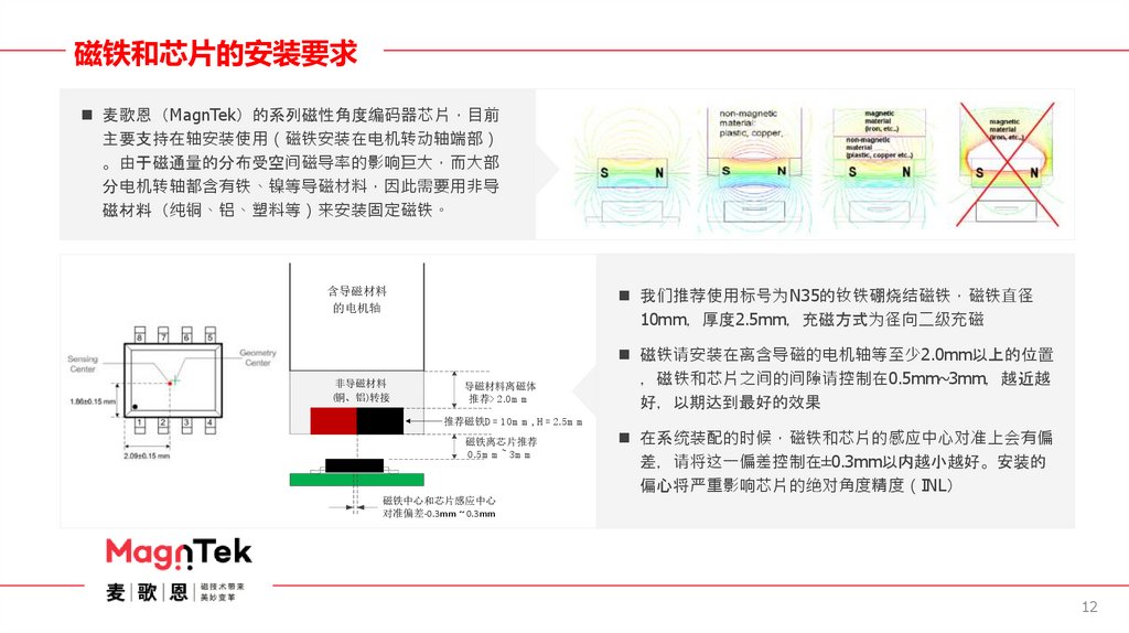 磁铁和芯片的安装要求麦歌恩 MagnTek 的系列磁性角度编码器芯片 目前