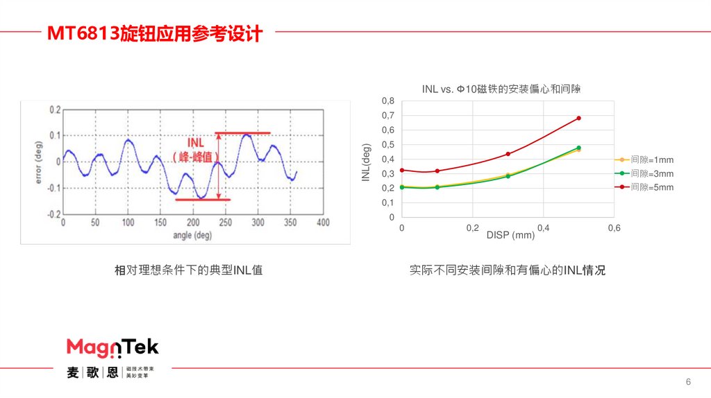 6mm直径磁铁 角度精度 INL 随间隙距离的变化趋势