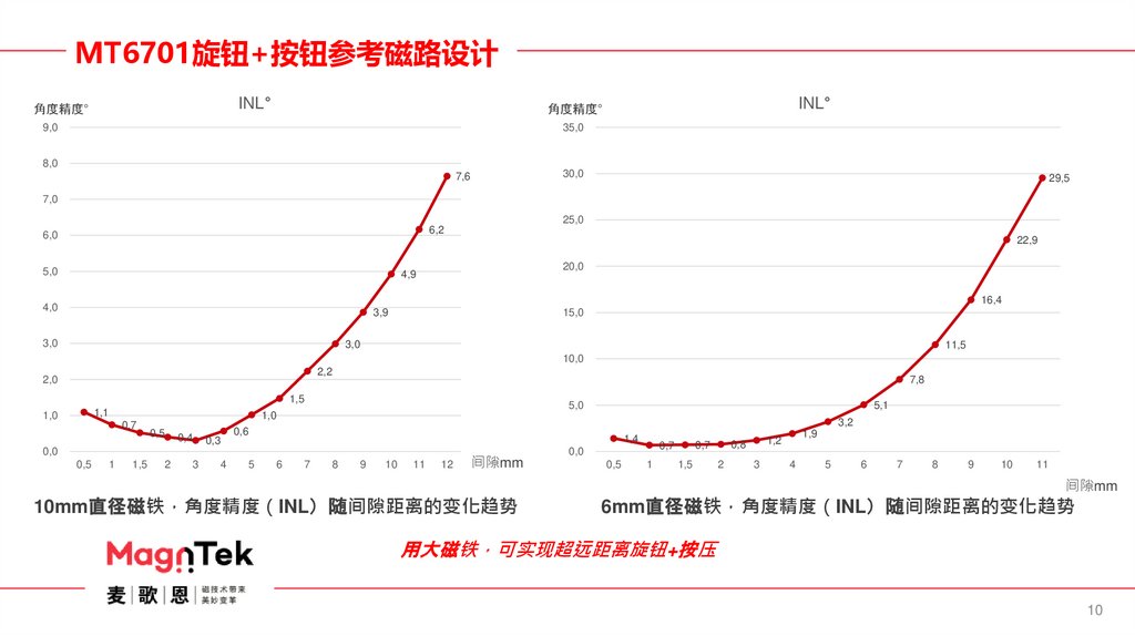 10mm直径磁铁 角度精度 INL 随间隙距离的变化趋势