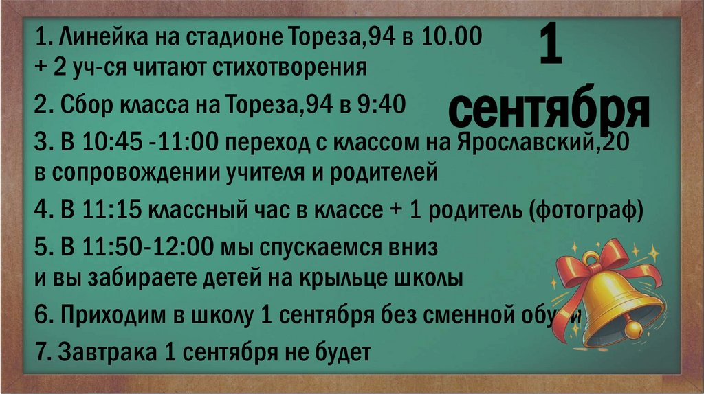 4. В 11:15 классный час в классе + 1 родитель (фотограф)