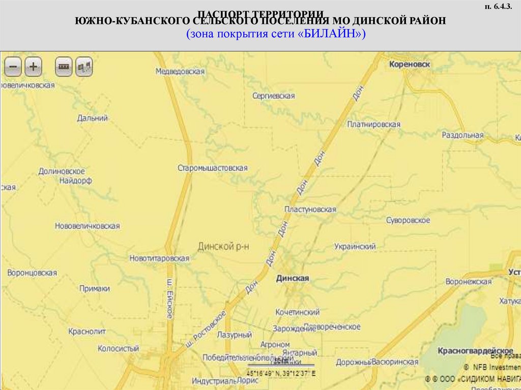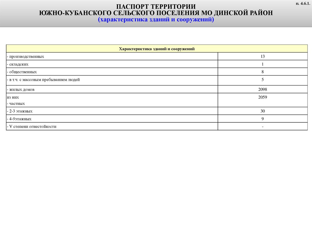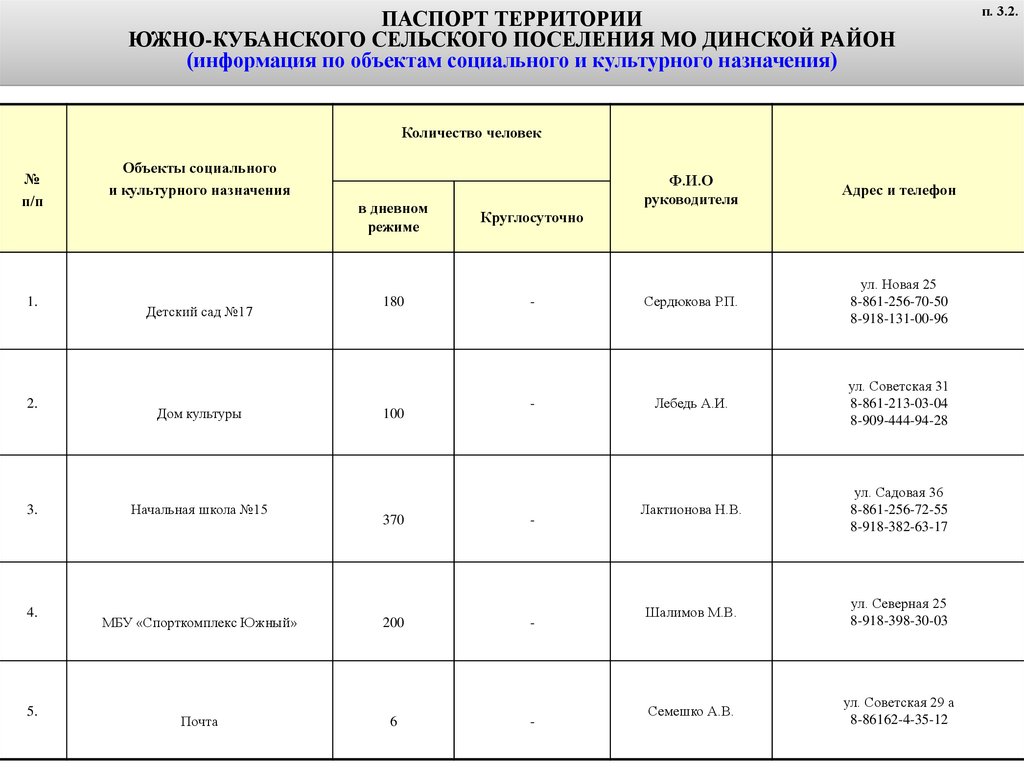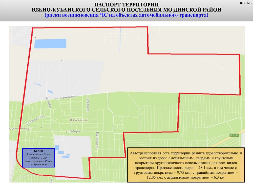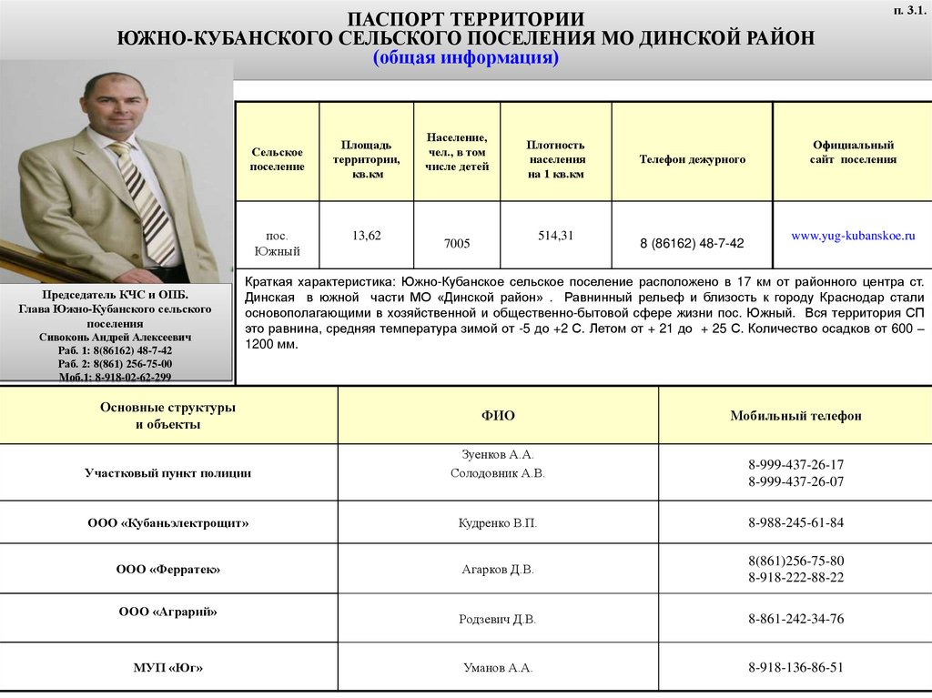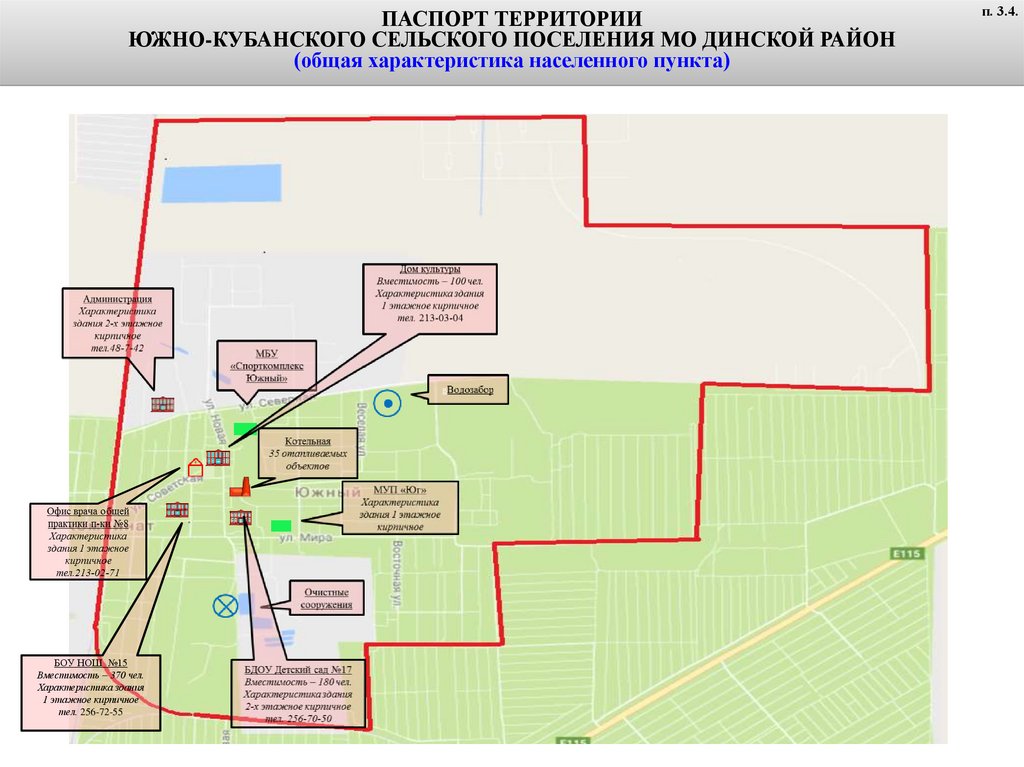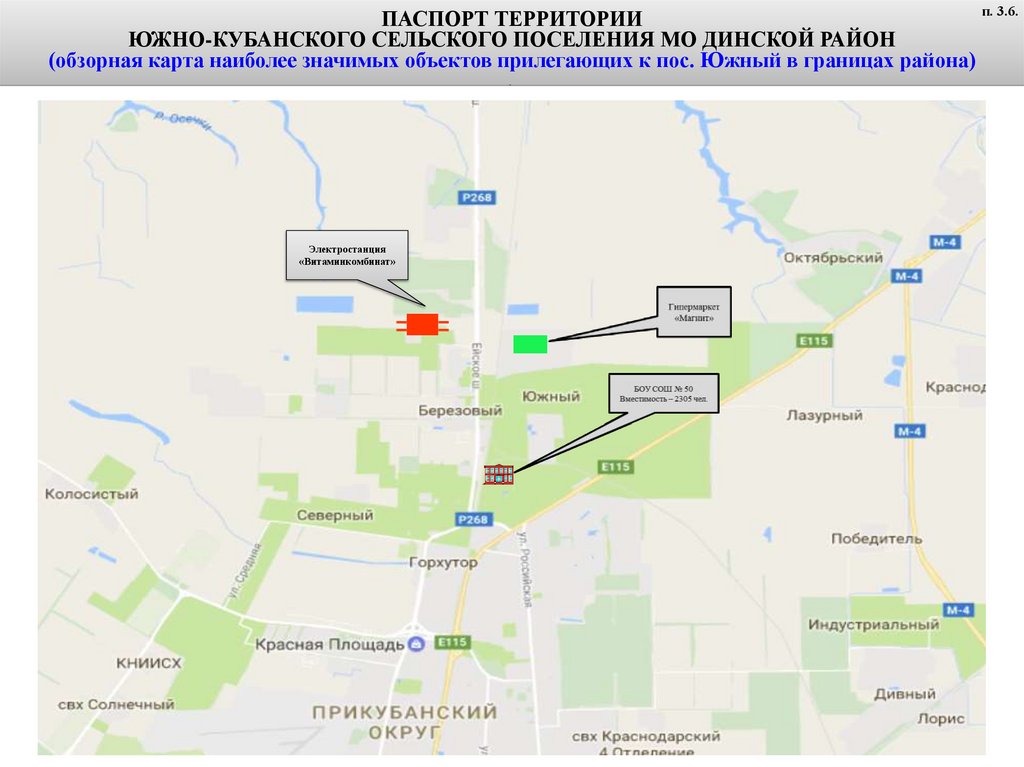 Электронный паспорт территории южно-кубанского сельского поселения муниципального образования Динской район