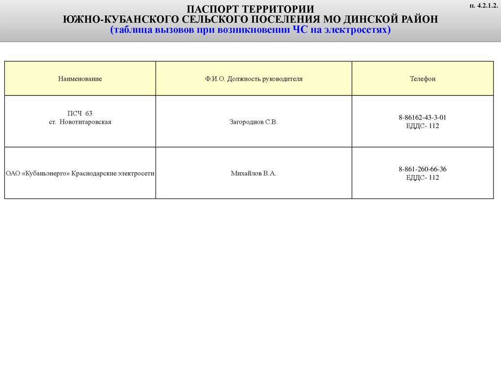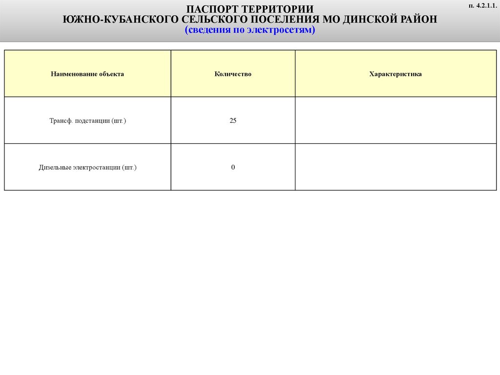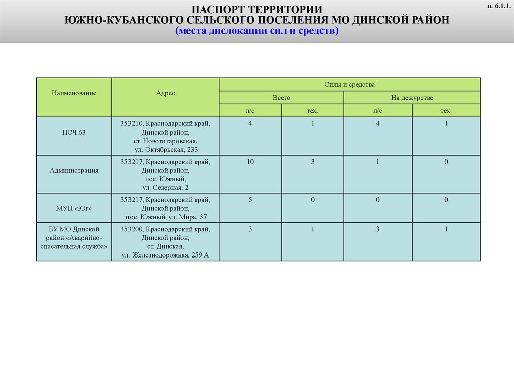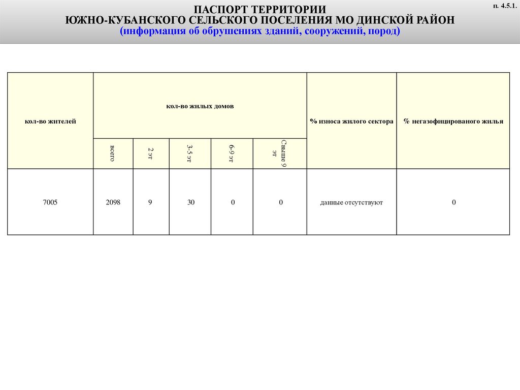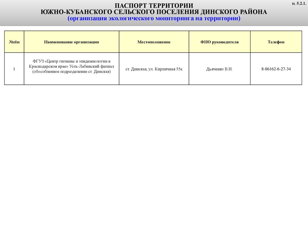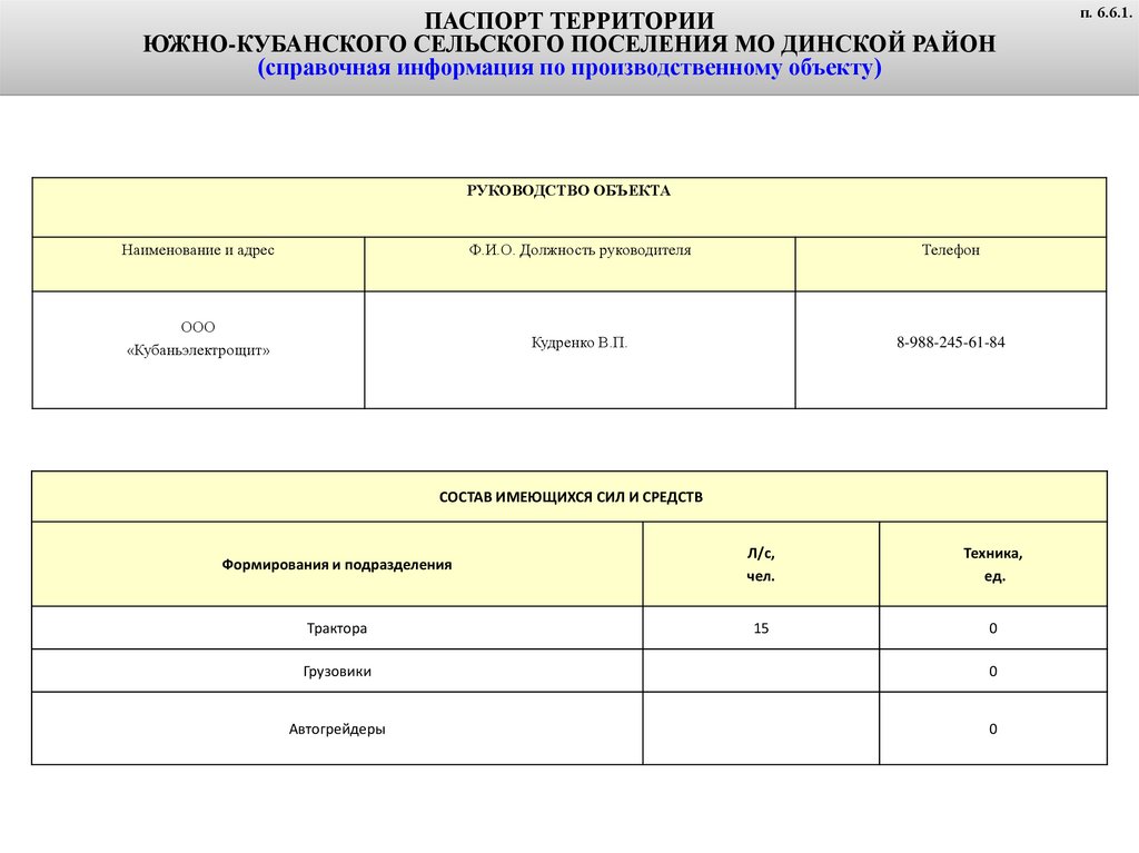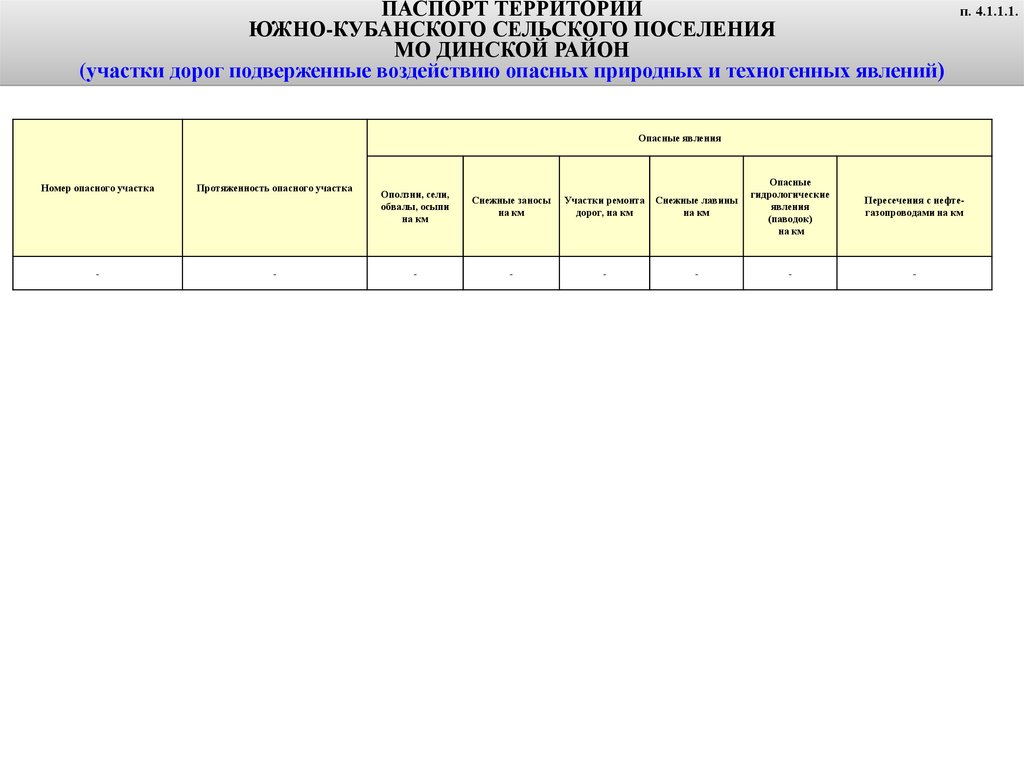 Электронный паспорт территории южно-кубанского сельского поселения муниципального образования Динской район