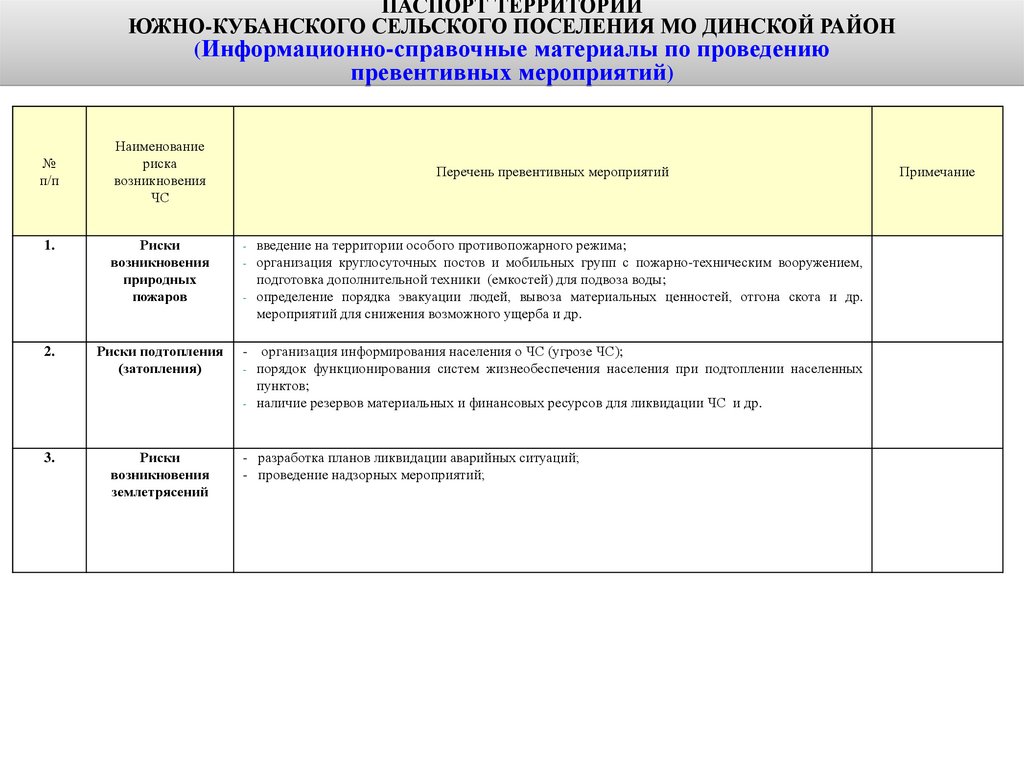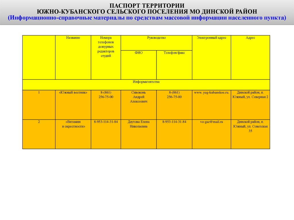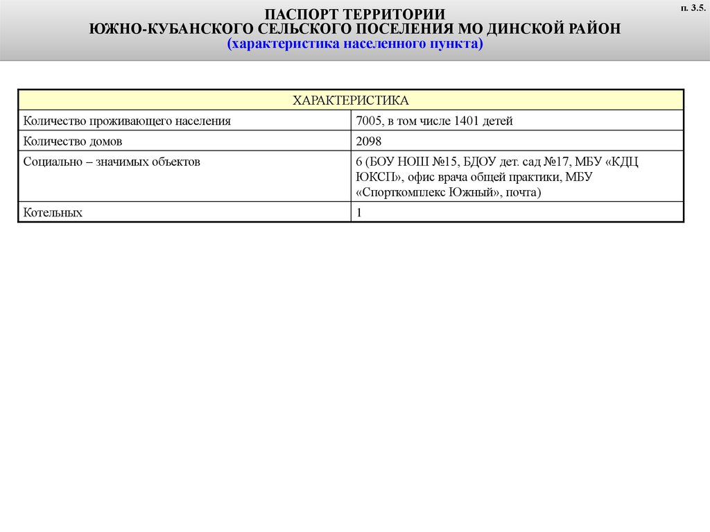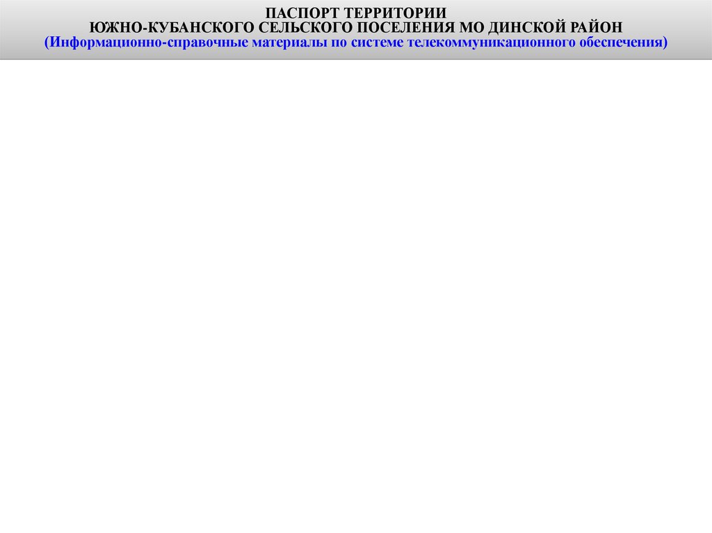 ПАСПОРТ ТЕРРИТОРИИ ЮЖНО-КУБАНСКОГО СЕЛЬСКОГО ПОСЕЛЕНИЯМО ДИНСКОЙ РАЙОН