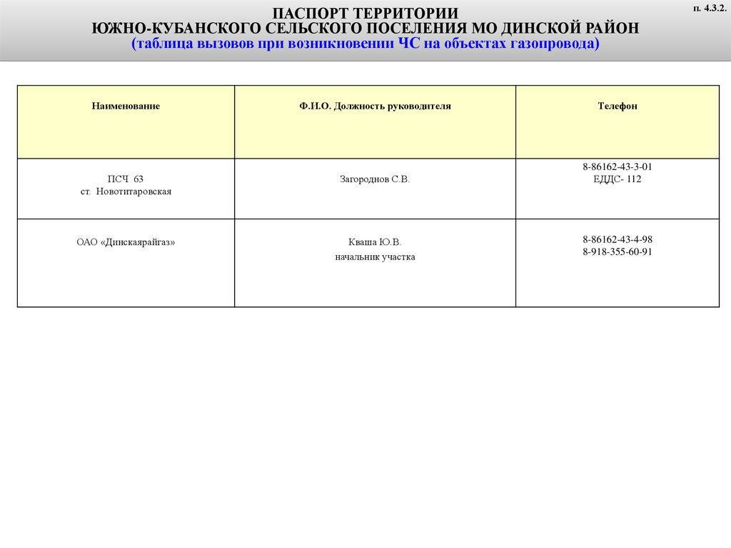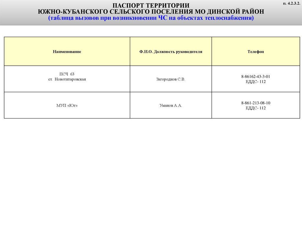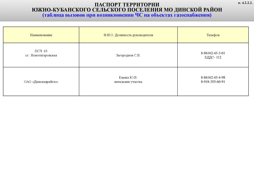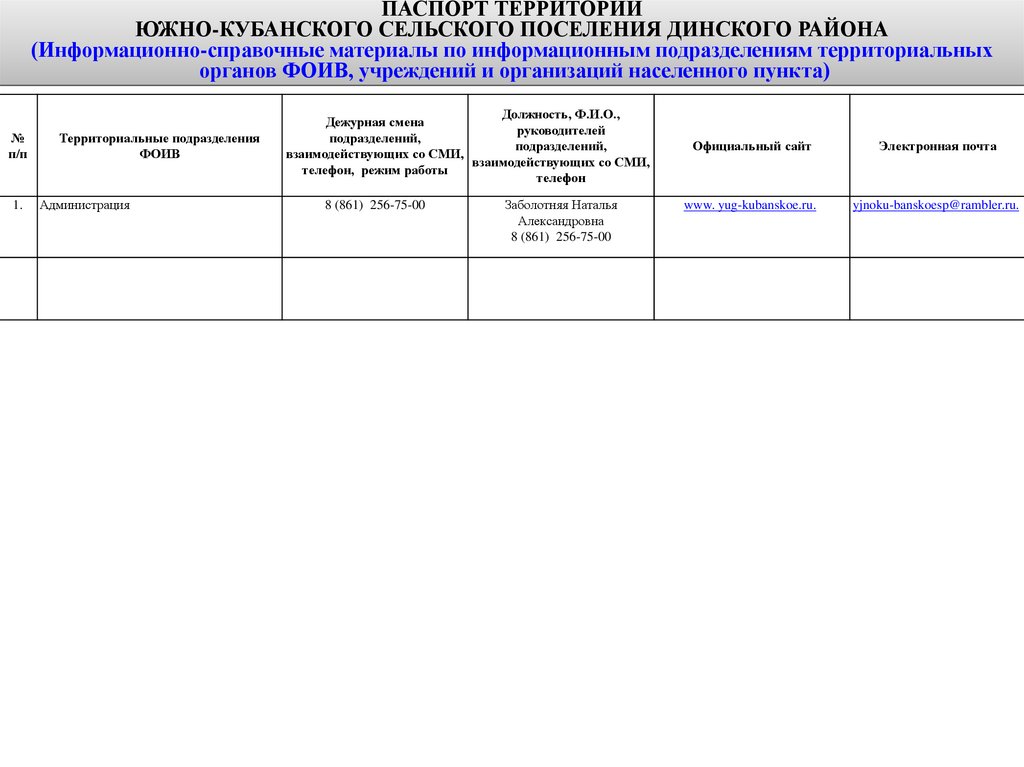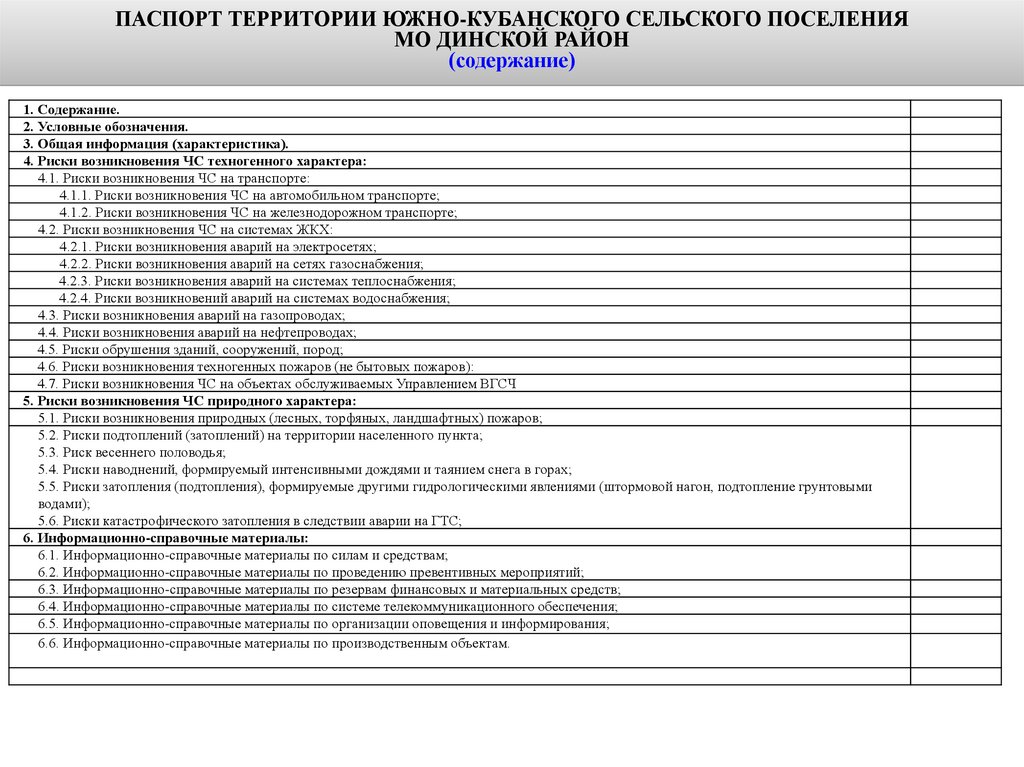 ПАСПОРТ ТЕРРИТОРИИ ЮЖНО-КУБАНСКОГО СЕЛЬСКОГО ПОСЕЛЕНИЯМО ДИНСКОЙ РАЙОН