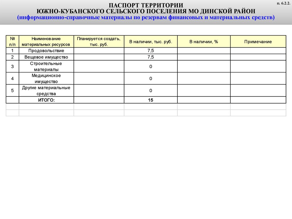 6.3. Информационно-справочные материалы по резервам финансовых и материальных средств;