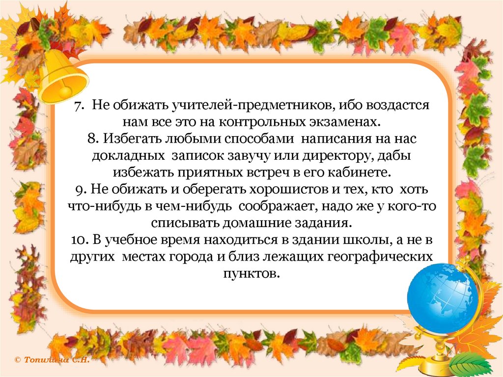 7. Не обижать учителей-предметников, ибо воздастсянам все это на контрольных экзаменах.