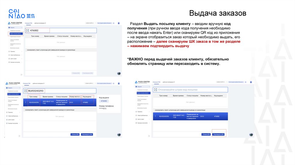 Инструкция по работе вCainiao PUDO center system