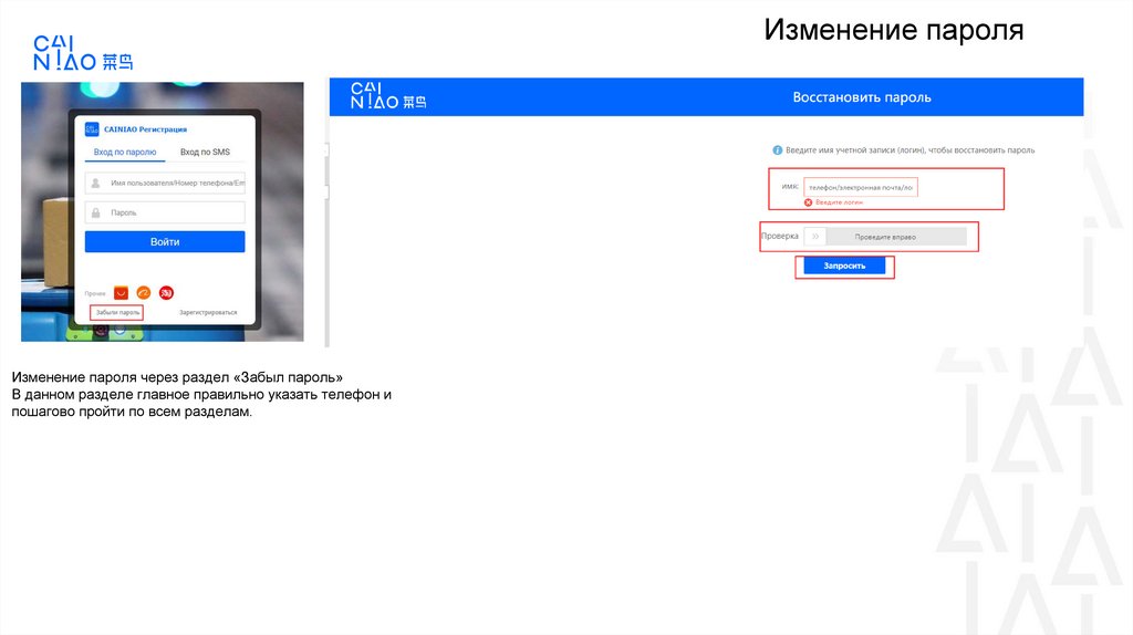 Изменение пароляИзменение пароля через раздел «Забыл пароль»