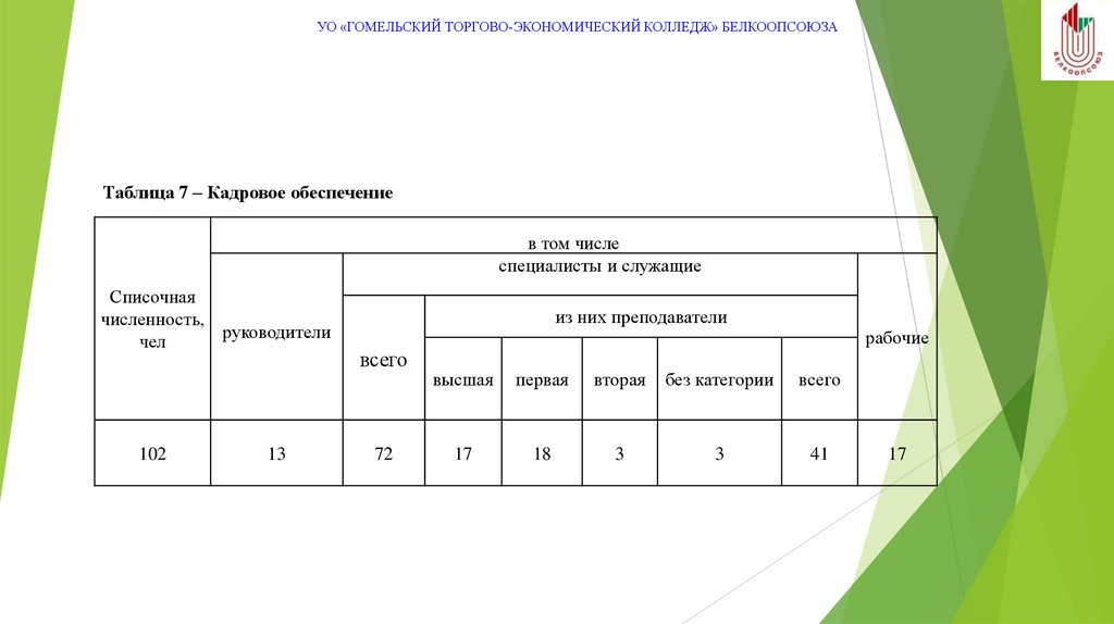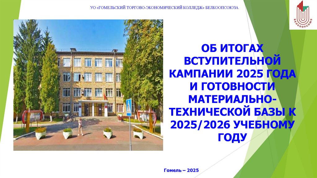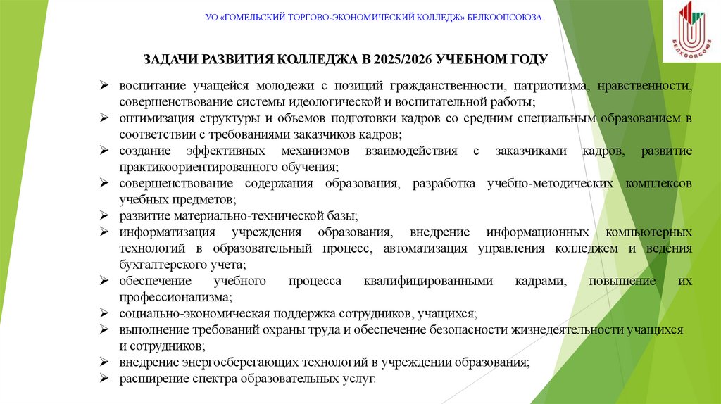 УО «ГОМЕЛЬСКИЙ ТОРГОВО-ЭКОНОМИЧЕСКИЙ КОЛЛЕДЖ» БЕЛКООПСОЮЗАЗАДАЧИ РАЗВИТИЯ