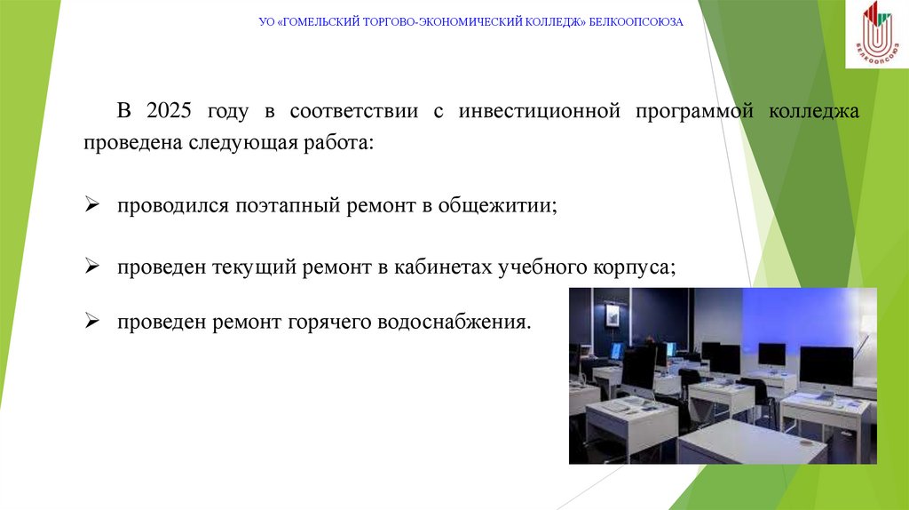 УО «ГОМЕЛЬСКИЙ ТОРГОВО-ЭКОНОМИЧЕСКИЙ КОЛЛЕДЖ» БЕЛКООПСОЮЗАВ 2025 году в соответствии с инвестиционной программой колледжа