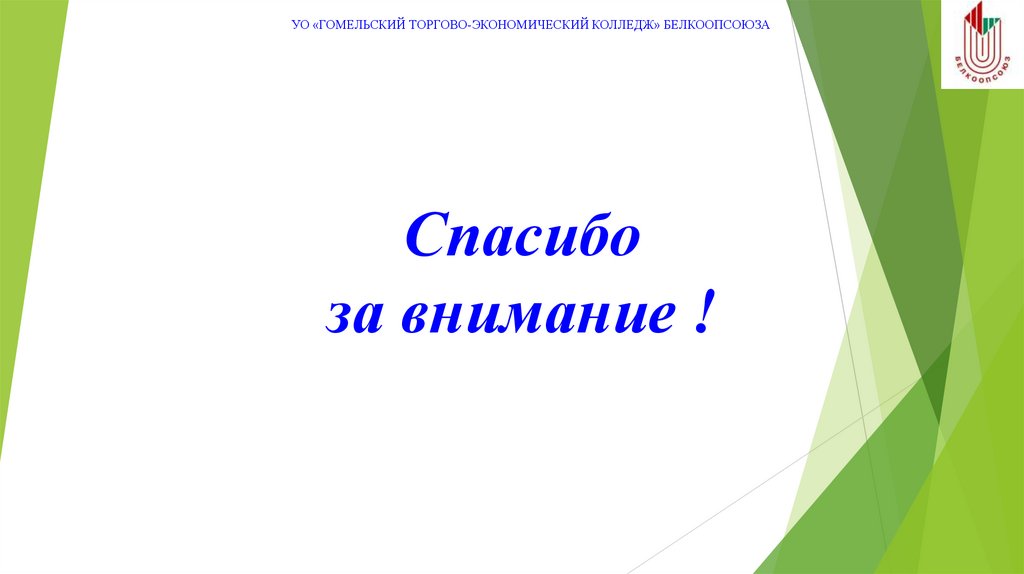 УО «ГОМЕЛЬСКИЙ ТОРГОВО-ЭКОНОМИЧЕСКИЙ КОЛЛЕДЖ» БЕЛКООПСОЮЗАСпасибо