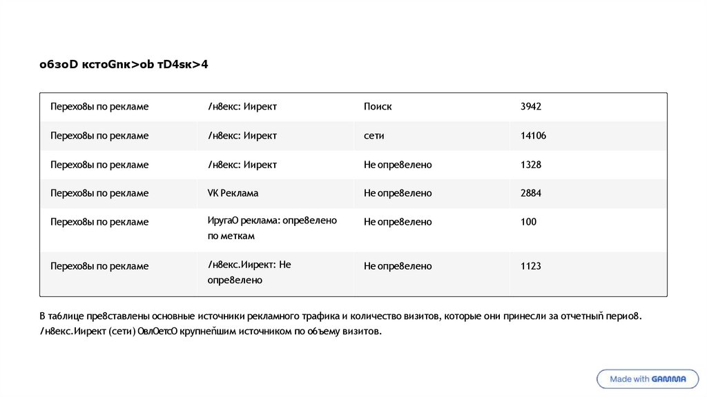 B та6лице пре8ставлены основные источники рекламного трафика и количество визитов, которые они принесли за отчетныň перио8.