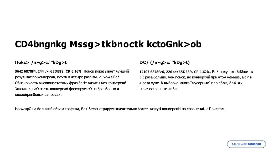 HесмотрO на 6ольшиň о6ъем трафика, Pc/ 8емонстрирует значительно 6олее низкуN конверсиN по сравнениN с Поиском.